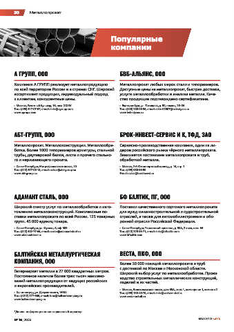 БАЛТИЙСКАЯ МЕТАЛЛУРГИЧЕСКАЯ ВЕСТА, ПКФ, ООО