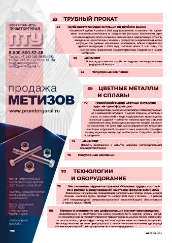 53 ТРУБНЫЙ ПРОКАТ Новости, достижения и события ведущих металлургических предприятий России 82