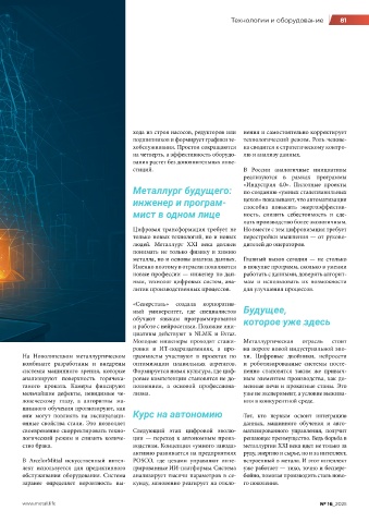Цифровизация в металлургии уже давно перестала быть ванные системы загрузки, которые самостоятельно регули- системы машинного зрения, которые Формируется новая культура, где циф- пенно становятся таким же привыч-