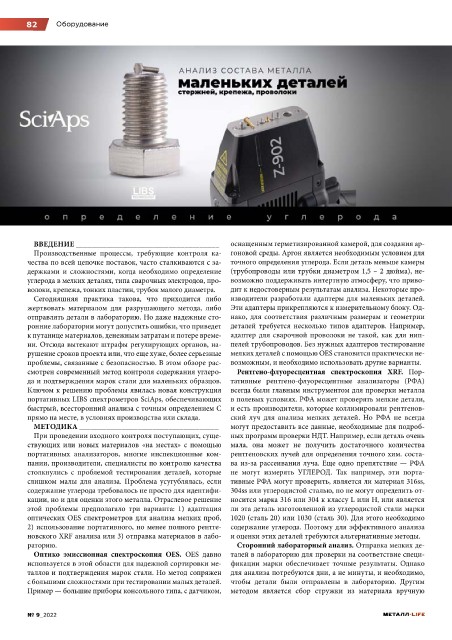 содержание углерода требовалось не просто для идентифи- 304ss или углеродистой сталью, но не могут определить от- необходимость использования более высокой степени проверки новке на объект анализа, SciAps LIBS обеспечивает больший